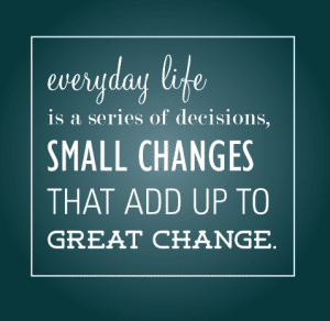 • Start with one small change. For example, cut out soda or beer, park further in the parking lot at work.
