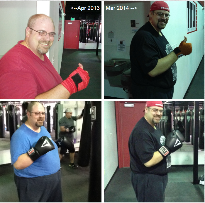 Derrick jumped right in, and knew he needed to “burn his boats,” and never go back. He used My Fitness Pal to track calories, joined a gym, cleaned out the junk food from his house. He shares that at 464 pounds, “It’s pretty terrifying to walk into a gym and, number one, be afraid you might break the treadmill.” Derrick ignored the conventional wisdom and started exercise very early in his journey, and after browsing some group exercise classes Derrick ended up finding kickboxing gym he really likes. Seeing other people at exercise classes at the gym and their encouragement and positivity was a big help in bringing Derrick out of his home-bound state. When he started tracking calories, what really stood out was portion size. 4 oz of meat was “like 3 bites” for him, and he worked to dial back portions. Derrick noticed eating out was costing him a fortune, and decided he would rather spend that money on eating healthy at home. Derrick was shocked at the ease of making the change at first. Tracking calories and measuring portions wasn’t as tough as he was expecting. Clean foods—even if they were in larger portions initially—helped his body adjust to dropping weight. He wished he had bought a food scale at the very beginning. Derrick got a “uniformly positive” response from folks around him when he shared that he was trying to lose weight. He then put his story online for further accountability to himself. Derrick didn’t want to make the journey alone this time. He was terrified of posting his first “before” picture online, but he is glad he did it.