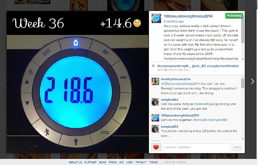 We all start this journey for our own reasons. I don’t know why @100poundweightloss2014 started hers. And I don’t know what’s motivating her to continue. But what I loved about this post from two months ago when that shocked face emoticon sat squarely beside that +14.6 was the “Holy crap… serious reality check today!” statement. And the best part was that she stated she had already felt sorry for herself and that she was done with that. I LOVE IT.